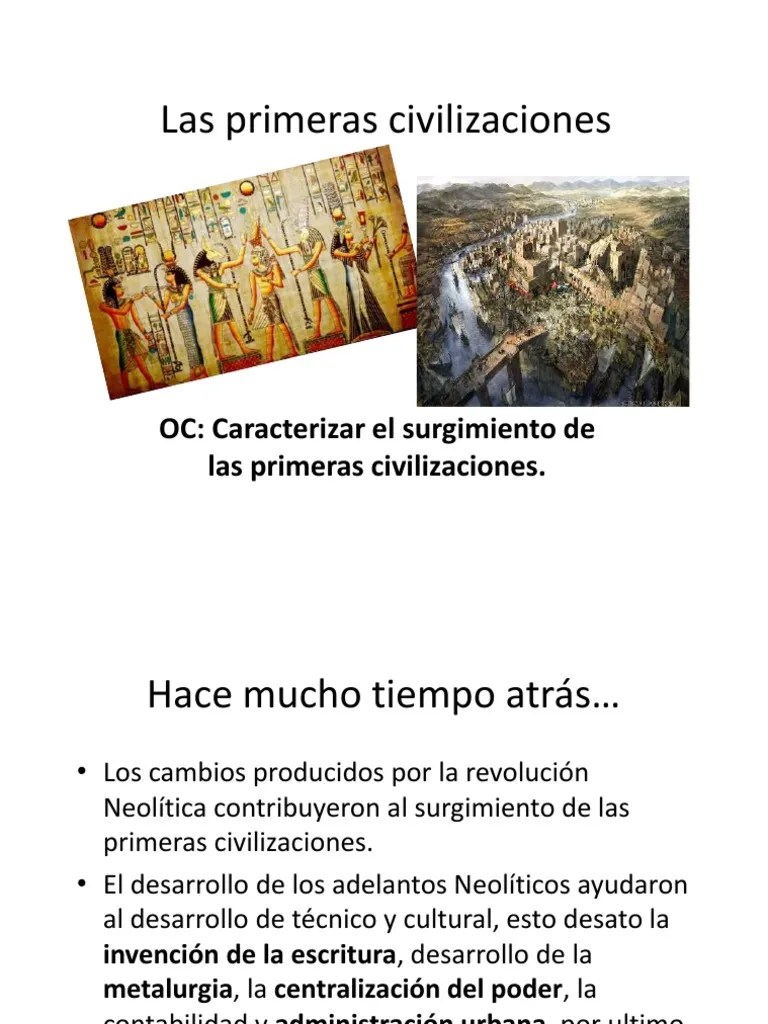 06.12.2007 · hace aproximadamente unos 5.000 años en diversos lugares de la tierra, unos alejados, otros próximos, las sociedades neolíticas sufrieron cambios muy importantes que dieron lugar al nacimiento de las primeras civilizaciones. ¿qué términos usamos para referirnos a estas civilizaciones?