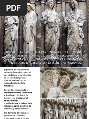 En general podemos decir que muchas cosas han cambiado con respecto a la escultura románica, ha cambiado la visión del mundo de la cual es La técnica empleada es la talla en piedra haciendo uso de cincel taladro y trépano. 18 entre otras construcciones burguesas destacan los palacios. La escultura gótica busca el naturalismo, copiado del mundo real y mostrando expresiones más dulces y naturales frente. La escultura gótica busca el naturalismo, copiado del mundo real y mostrando expresiones más dulces y naturales frente.